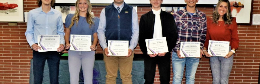 The students were Riley Bellner, Xander Gilsdorf, John Heckert, Jayden Hendricks, Reese Oberheim and Garret Swank. Competing in the Finance Division in either Advanced Accounting or Payroll Accounting, all six students finished in the top ten in the State of Ohio and three, Bellner, Heckert and Swank finished in the top five nationally. The three national qualifiers will be traveling to Dallas, Texas to compete in the BPA National competition being held from May 4th to May 8th.