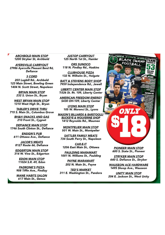 It has recently come to my attention there is a relatively new publication called Black Swamp Football that provides in depth coverage of 53 high school football programs from Northwest Ohio. This includes all NWOAL teams and features an analysis of their offense, defense, special teams and their chances for success in the league. Below is a list of locations where the magazine may be purchased. You can also go to blackswampfootball.com for more information.