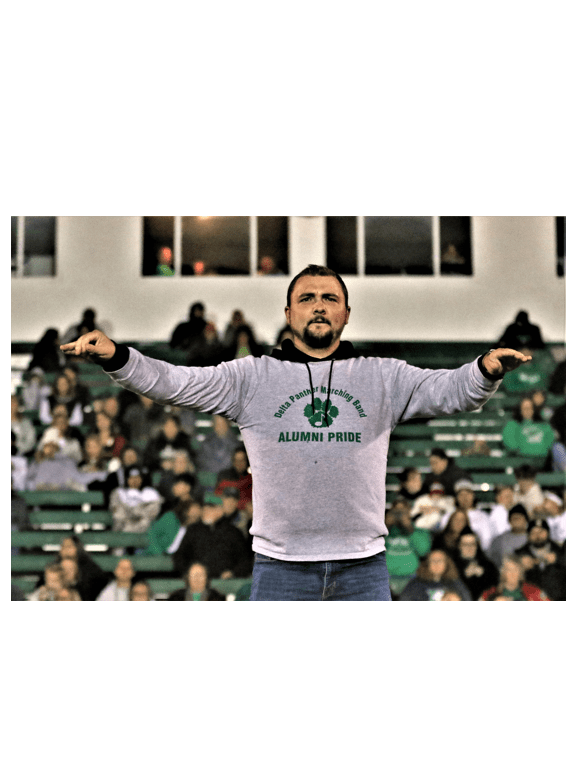 Photos include the Delta High School Marching Panthers along with the Delta Panther Alumni Band and the Swanton High School Marching Bulldogs.