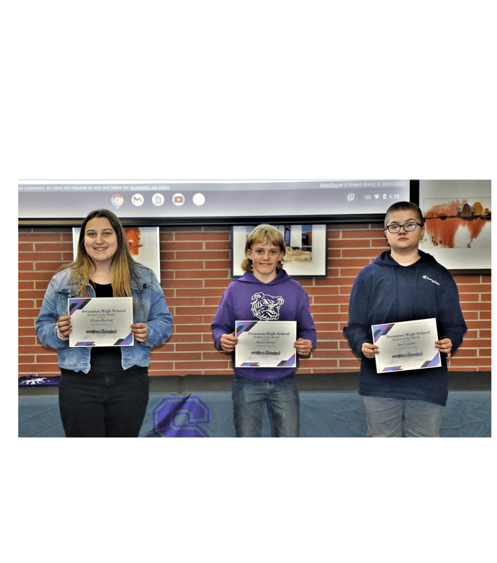 At the October Swanton Board of Education (BOE) meeting, four high school students, one from each of the four grades, was recognized by the BOE for being chosen Student of the Month. The students were Freshman Dylan Steiner, Sophomore Ian Cutcher, Junior Skylar Adams and Senior Alyson Burling. Principal Jason Longbrake said a few words about each student, who was nominated by one of their teachers, and gave them each a Certificate of Commendation from the BOE. Skylar Adams was not present during the ceremony.