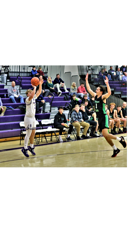 A pivotal moment of the contest came during the Bulldog rally, with just over four minutes left in regulation, when Swanton standout Cole Mitchey stole the ball and raced down the right side toward the offensive end. He was cut off by a defender who dove for the ball and crashed head-long into Mitchey’s face, opening up a gash over his left eye that would later require five stitches. A flagrant foul was called, however, Mitchey, one of Swanton’s top players, was taken to the locker room and would not return to the lineup.