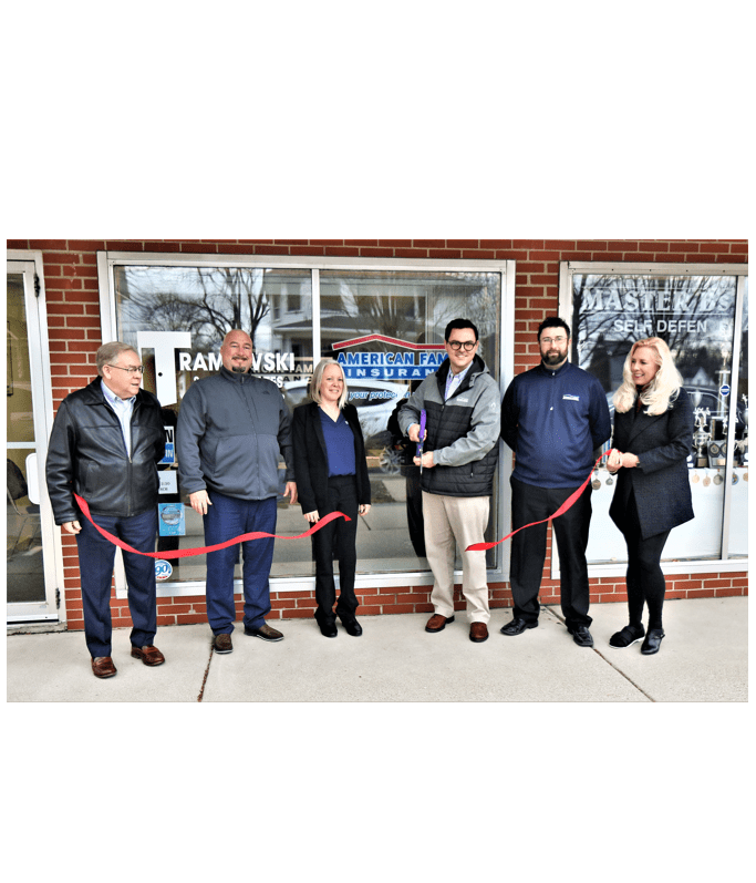 Photo: Agent Jim Trampevski cuts the ribbon to officially take over American Family Insurance, Swanton Office