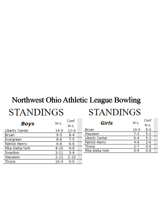 This Saturday, February 10, 2024, the Northwest Ohio Athletic League will hold its annual boys and girls tournament at River City Bowl-a-Way, located at 380 Independence Drive in Napoleon. Shadow bowling begins at 11:45 and the tournament will start at noon. The results from the tournament will be factored into the final team standings and will determine All-NWOAL individual awards.