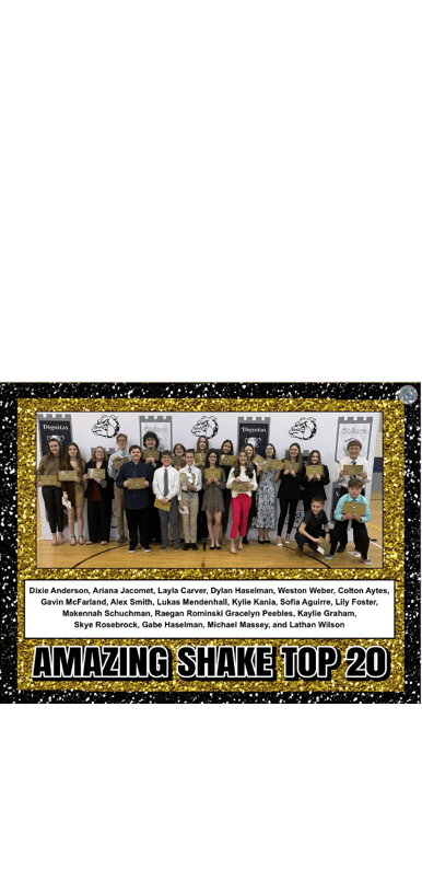 The top 20 students this year are, Dixie Anderson, Ariana Jacomet, Layla Carver, Dylan Haselman, Weston Weber, Colton Aytes, Gavin McFarland, Alex Smith, Lukas Mendenhall, Kylie Kania, Sofia Aguirre, Lily Foster, Makennah Schuchman, Raegan Rominski, Gracelyn Peebles, Kaylie Graham, Skye Rosebrock, Gabe Haselman, Michael Massey, and Lathan Wilson.