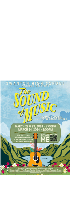 Under the direction of first-year Choir and Music Director Jayce Bender, Swanton High School performs the “Sound of Music” this weekend, March 22nd to 24th. With senior Kai Snyder portraying protagonist Maria Rainer and senior Jaiden Hardaway as Captain George von Trapp, the exceptionally talented cast of singers and actors recreate the story of the Trapp Family Singers during the lead-up to the invasion of Austria by Nazi Germany. The show is filled with many memorable Rogers and Hammerstein songs that people have been singing for decades since the musical premiered on Broadway in 1959 and became a blockbuster Oscar-winning movie in 1965. This is a performance you do not want to miss.