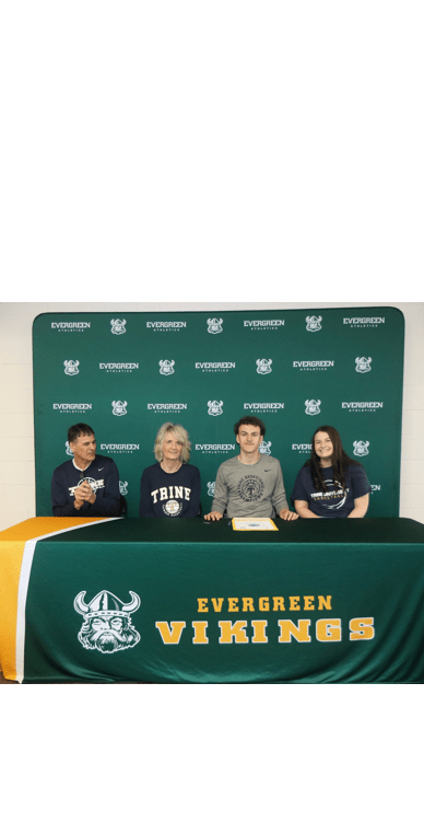 Eli Keifer, sharp shooting guard of the Evergreen Vikings basketball team, signed a National Letter of Intent to continue his education and basketball career at Trine University in Angola, Indiana, the newly crowned NCAA DIII Men’s Basketball National Champion. In joining the Thunder basketball program, Eli will be under the tutelage of NCAA DIII Men’s Basketball 2023-2024 Coach of the Year and 1999 Evergreen graduate, Brooks Miller. Coach Miller played basketball for the Vikings and for Eli’s father, Jerry Keifer, who retired this year after 31 seasons at the helm.