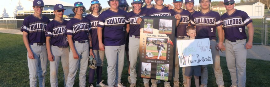 Photo: The Bulldogs celebrate Adam Lemon’s 100th strikeout.
