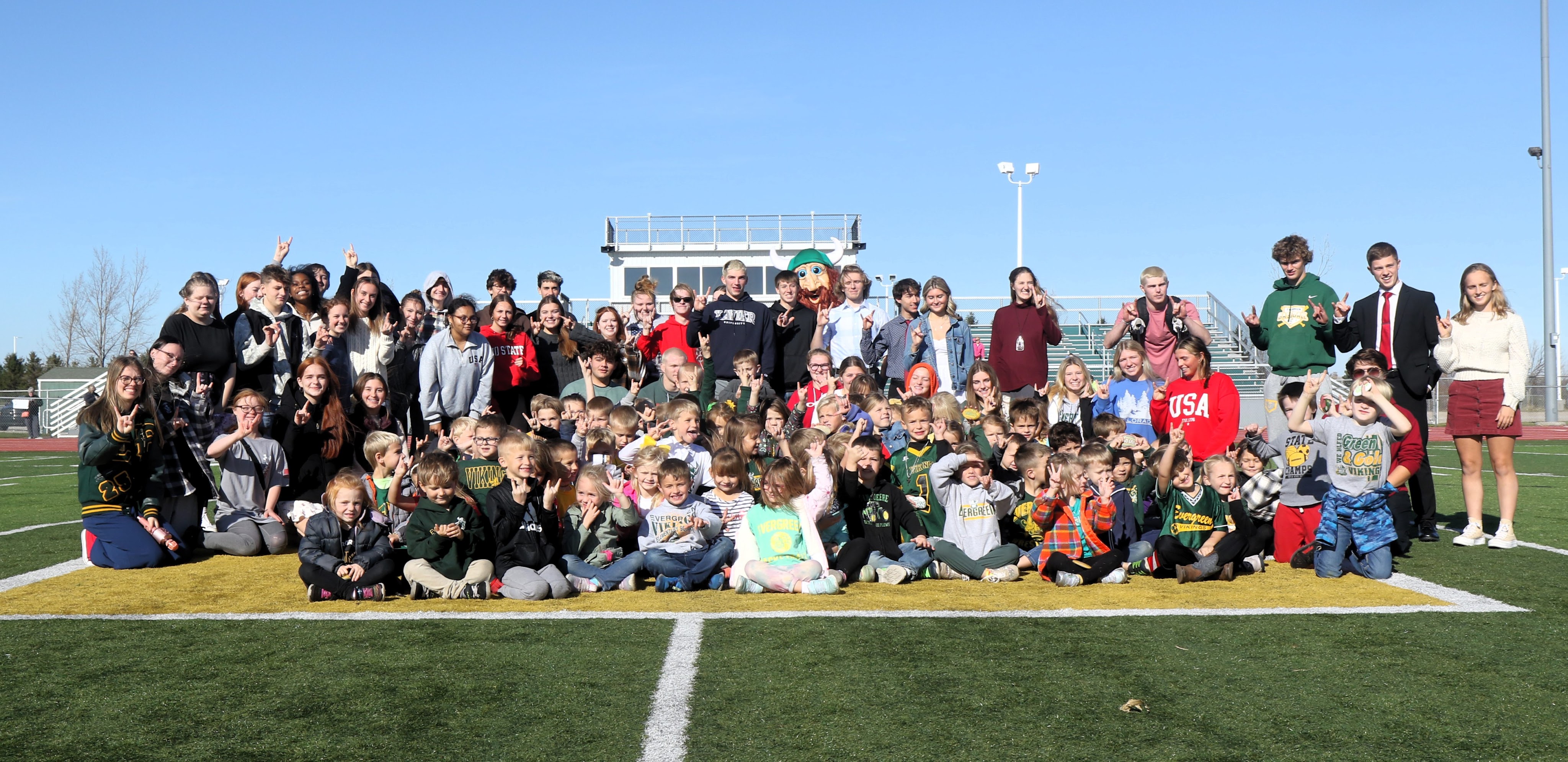 This past Friday afternoon, on the turf at Pifer Field, the Evergreen Local School District held their inaugural “Passing of the School Spirit” event, explained as “From the Class of 2025 to the Class of 2037, we pass our Viking Pride to you.” Evergreen Kindergarten teacher, Amber Hansel, organized the event after seeing a Facebook video of a school in Texas that had a similar event.