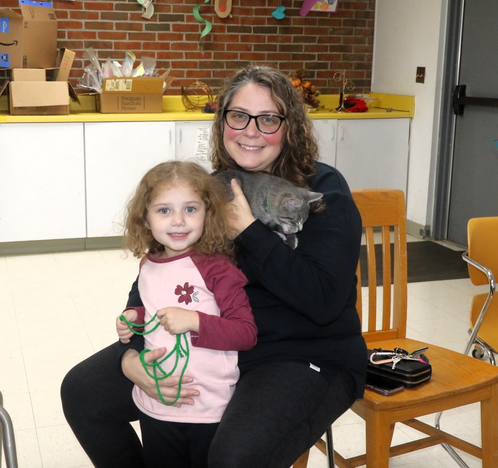 Photo: Kristina Stormer and her daughter “Izzy” with one of the potential feline adoptees