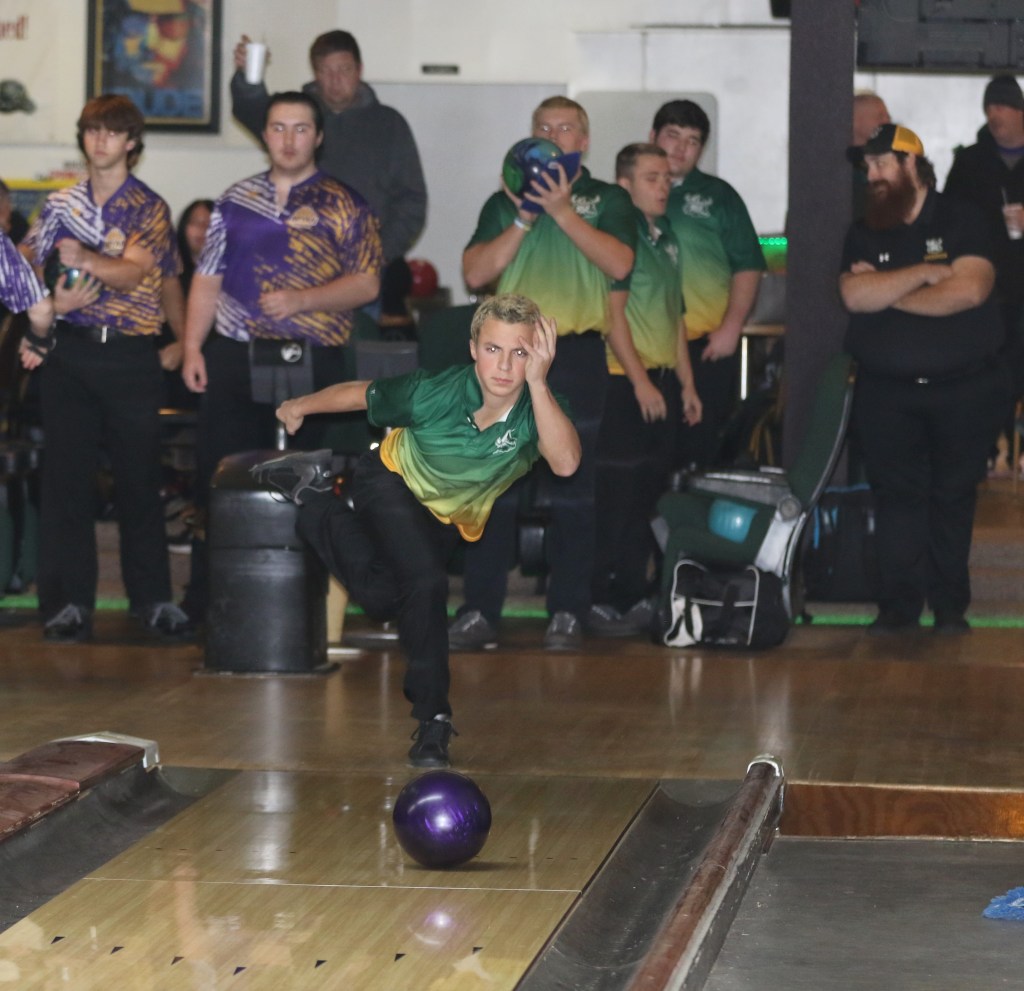 On Friday afternoon at the Swanton Sports Center, the Evergreen Vikings lost to the Bryan Golden Bears 2283-2116. Viking senior Michael Laver led all bowlers with a two-game series of 434 including games of 230 and 204. Aaryan Singh bowled a 381 series for Bryan including a 202 game.