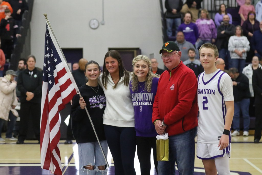 Prior to the Swanton versus Liberty Center boys’ basketball game, the Swanton National Honor Society (NHS) honored U.S. Army veteran Jerry Lemons for his service to our country. Swanton senior and NHS member Hannah Crouse read a short biography to the crowd. The bio read as follows: