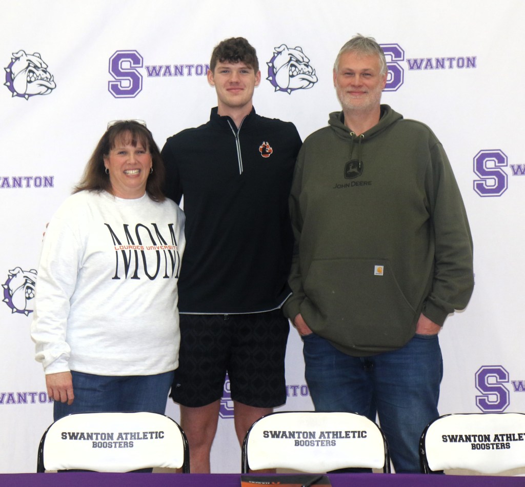 Charlie Wood, the towering center of the Swanton Bulldogs basketball team, has signed a National Letter of Intent to continue his education and basketball career at Lourdes University in Sylvania. Recently named to the DIII All-Ohio boys’ basketball Second Team, Charlie was also selected, for the second time in his career, to the NWOAL First Team this past season.