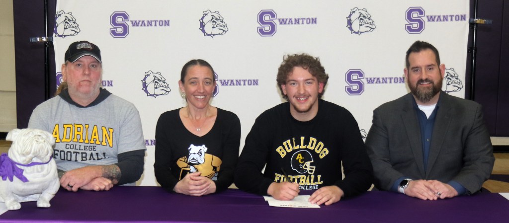 For his entire multi-sport athletic career within the Swanton Local School District, Benjamin (Ben) Tufts has heard the chant of “Go Bulldogs” from fans when getting ready to compete against other schools. Yesterday, in front of family, friends and teammates, he signed a National Letter of Intent to continue his education and football career with Adrian College, ensuring for the foreseeable future, he will be hearing that familiar chant as a member of the Adrian Bulldogs football program.