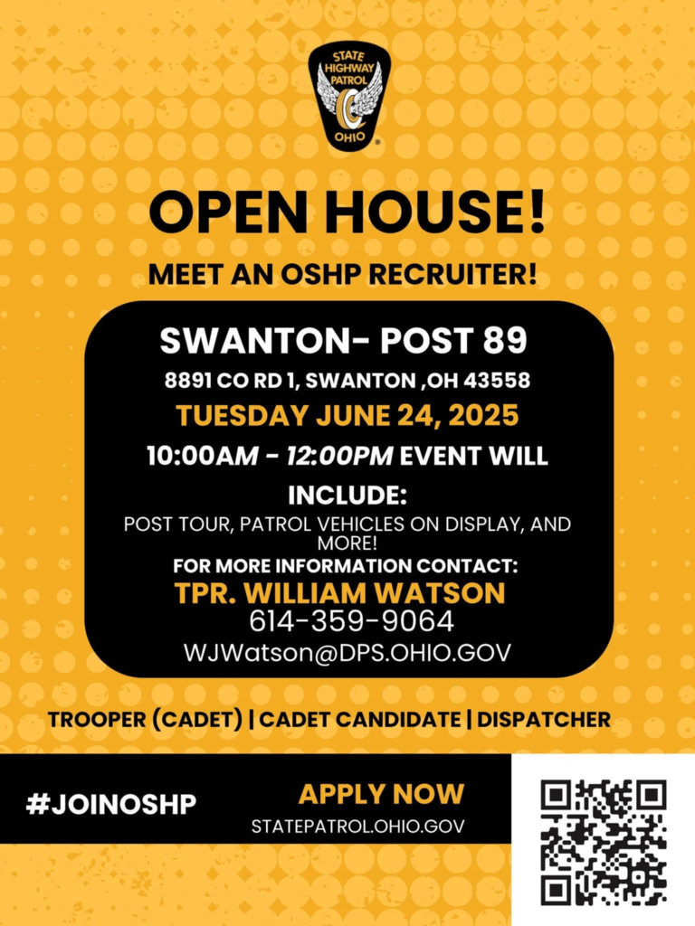 OSHP Recruiting Event Posted on June 23, 2025 by Bill O'Connell Leave a comment Looking to enter the world of law enforcement.? Here is a great opportunity to see what it is all about. Share this: Click to share on X (Opens in new window) X Click to share on Facebook (Opens in new window) Facebook Like Loading... Related Uncategorized