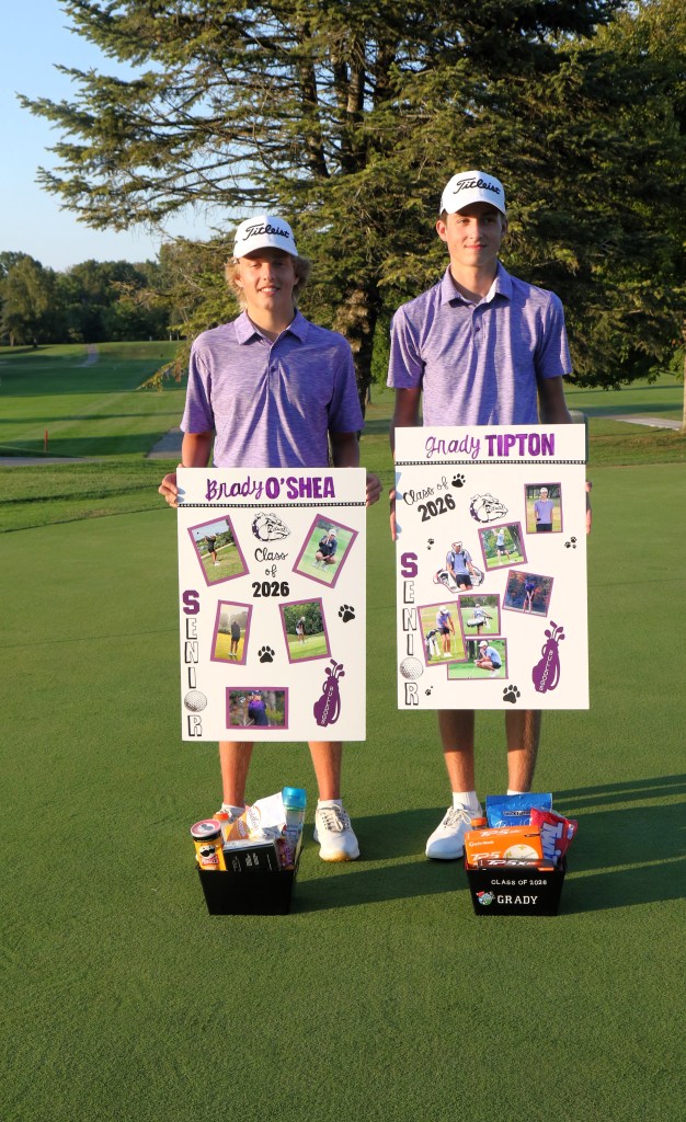 Following a critical tri-match with Archbold and Bryan at Valleywood Golf Club, the Swanton Bulldog boys’ golf team celebrated Senior Night in recognition of the two seniors on the roster. Former Swanton teacher, Betty Jo Sadowski, read a small bio and introduced both seniors, Brady O’Shea and Grady Tipton.