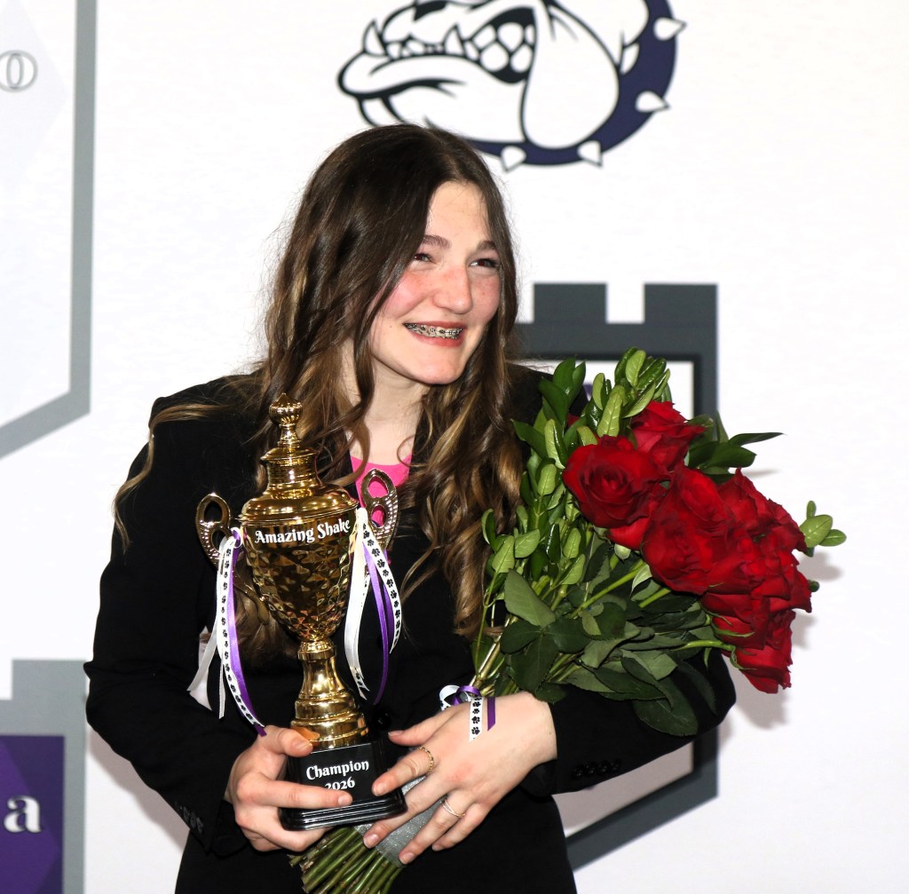Beginning with the entire 7th-Grade student body and against strong competition throughout all four rounds of Swanton Middle School’s Amazing Shake Competition, Maria Avery was chosen as the winner in the finals by a panel of five judges. Narrowly edging out Isabella Jiannuzzi and Slade Wielinski, Maria will now compete in the Global Amazing Shake Competition in March of 2027 at the Ron Clark Academy in Atlanta.