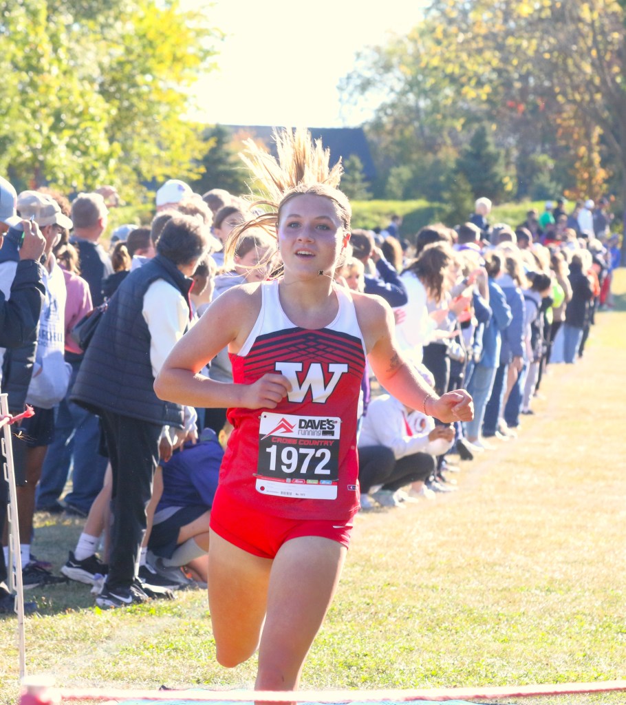 With a time of 18:16.66, Wauseon senior Ella Rhoades won the NWOAL Girls Cross Country Championship by a relatively comfortable margin of almost 16 seconds. Finishing in second place was Mia Amador of Patrick Henry with a time of 18:32.42 followed by Nicolette Stickney of Bryan (18:44.31), Colbie Strayer of Liberty Center and Hadley Hudson of Archbold (18:57.69), completing the top five in the field of 54 runners.