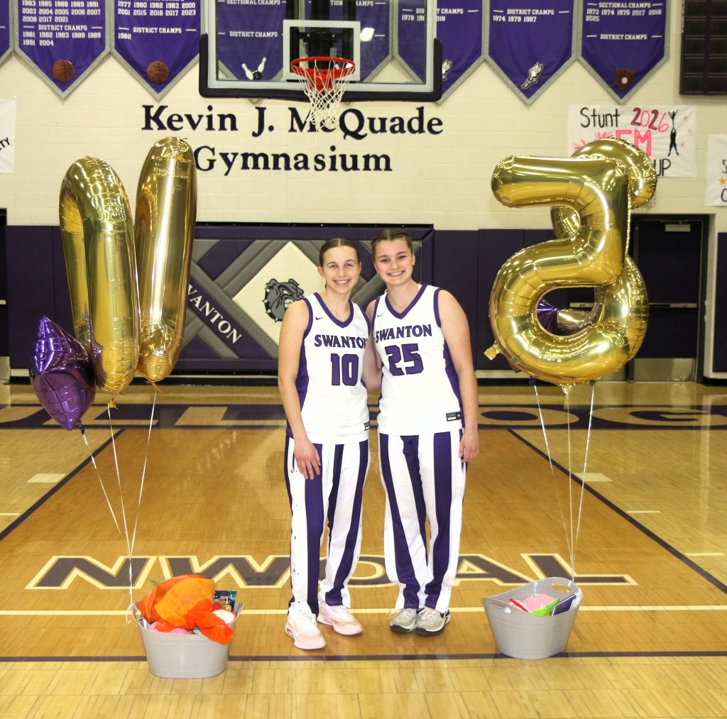 Last Monday, before tip-off of the Swanton Lady Bulldogs and Pettisville Lady Black Birds basketball game, Swanton High School recognized two seniors, Lauren Bettinger and Carli LaGrange, for their contributions to the Lady Bulldog basketball program. Betty Jo Sadowski, retired Swanton Local Schools teacher, introduced the seniors and read a short bio for each.