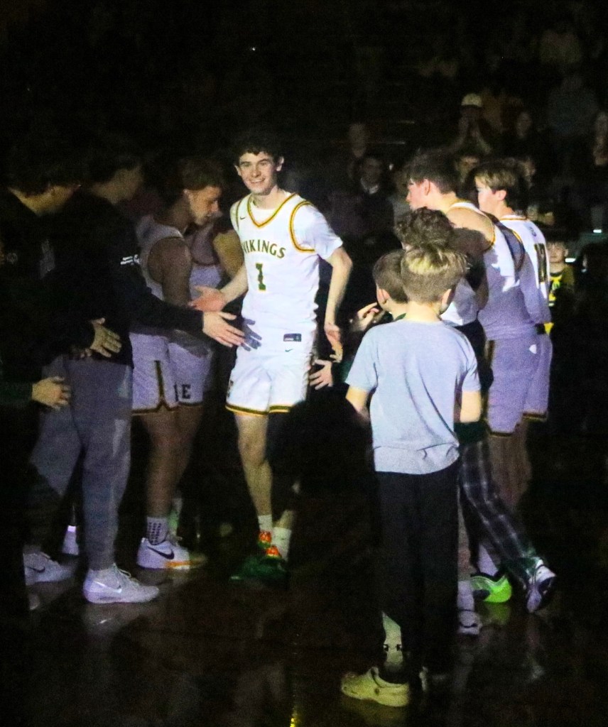 Inspired by the unlikely return of senior standout Troy Manz from what was initially believed to be a season-ending knee injury, the Evergreen Vikings exploded out of the gate and steamrolled the visiting Swanton Bulldogs 84-48 at the “Big House” on Friday night in NWOAL basketball action. Manz and fellow senior Quinten Eisel combined for 21 first half points in staking Evergreen to a 42-22 lead as the teams went to the locker room.