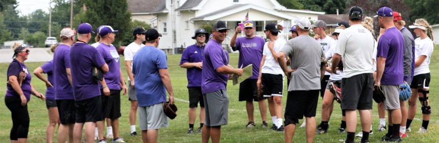 Two teams of Swanton High School graduates got together on the varsity baseball field at Memorial Park to play in what they hope will be the first of many alumni co-ed softball games. The teams were divided into the older seasoned-by-life veteran Bulldog grads wearing purple versus the younger still-finding-their-way-in-life Bulldogs wearing white. The Purple Bulldogs were hoping to prove they still had it going on while the White Bulldogs wanted to send the message, “Make way for the next generation.” to their older fellow alums.