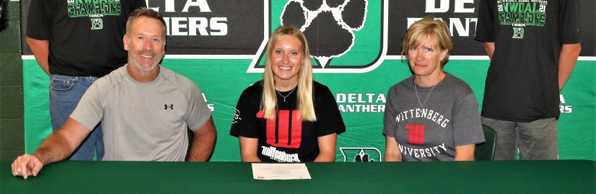 Delta senior Jenna Hallett has signed a National Letter of Intent to continue her track and cross-country career as well as her education at Wittenberg University in Springfield, Ohio. Choosing to compete at the next level was actually a recent decision she made this past fall. “It was really just this past season of cross-country that I decided I wanted to do it in college. I didn’t just want to study,” explained Jenna. “I didn’t want it to be over yet.”