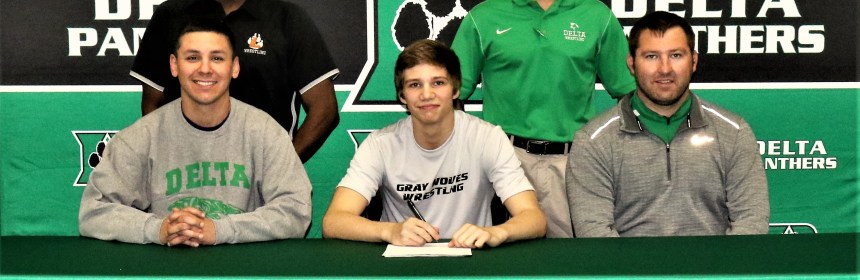 Gabe began his wrestling career at Delta as a freshman competing in the 113-pound weight class and moved up a class each year before finishing his senior year at 138 pounds. While wrestling for the Gray Wolves he plans to major in Digital Media and minor in Computer Science.