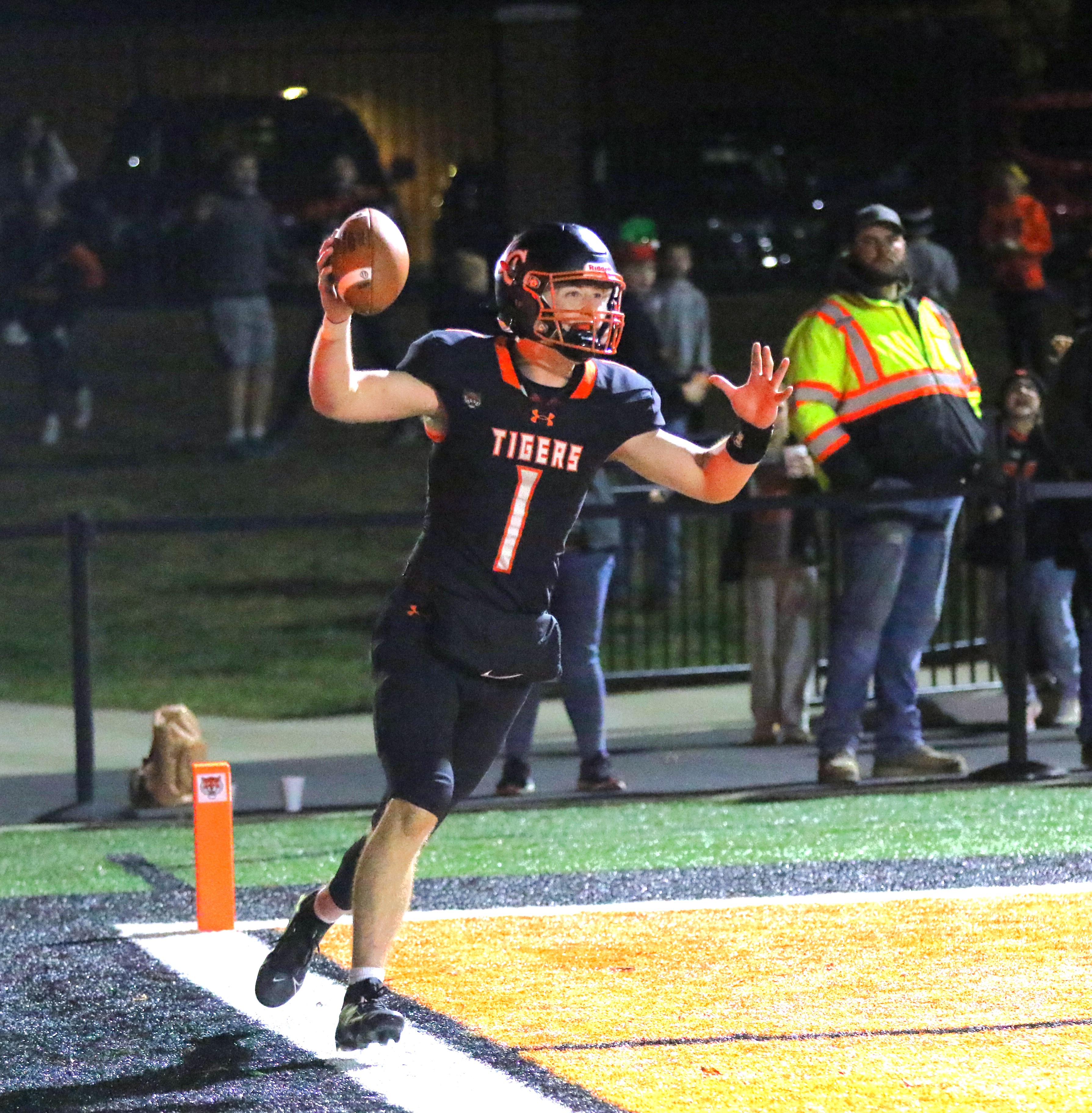Photo: Quarterback Grady Miller celebrates his 19-yard touchdown run