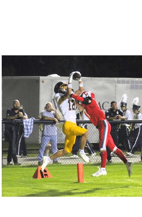 Photo: Morgan Harris pulls in a pass from Maddux Pinter for a touchdown.